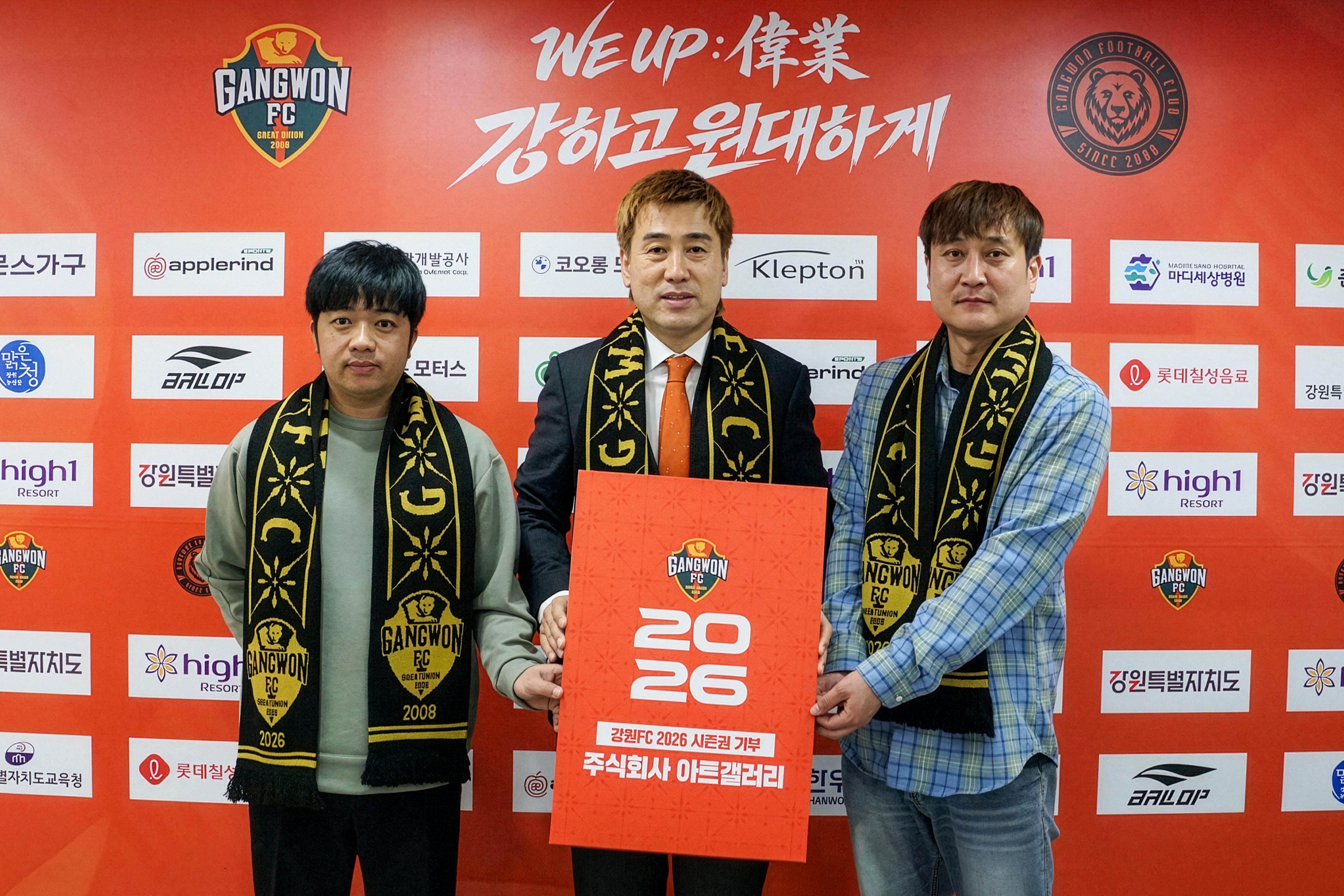 송준배 이사는 “아트갤러리는 강원FC와 긴밀히 협업하며 성장했다. 앞으로도 구단 운영에 실질적인 도움이 될 수 있도록 최선을 다하겠다”고 말했다. 황지웅 이사는 “지역 기업으로서 책임을 다하고 구단과 지속적으로 협력하겠다”고 밝혔다.